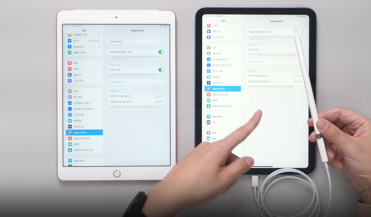 최근에 출시한 아이패드 10세대에 경우에는 위 사진과 같이 복잡한 방식으로 애플펜슬을 충전해야 하는 불편함도 있어 추천드리기 어렵습니다.